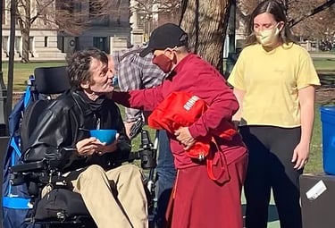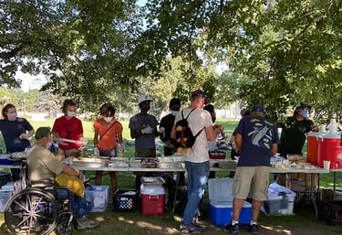 Providing coffee, hot cocoa, breakfast, and needed supplies when the City & County of Denver forcibly moves our unhoused neighbors. We also continue to advocate for the end of these traumatic displacements or "sweeps."